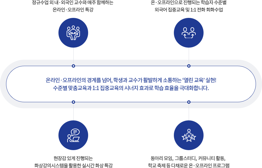 À̹ÌÁö ¿ìÃø ÇÏ´Ü : ¿Â¡¤¿ÀÇÁ¶óÀÎÀ¸·Î ÁøÇàµÇ´Â ÇнÀÀÚ ¼öÁغ° ¿Ü±¹¾î ÁýÁß±³À° ¹× 1:1 ÀüÈ È¸È¼ö¾÷