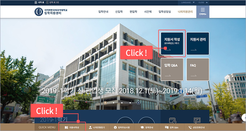 ¡°Áö¿ø¼ ÀÛ¼º¡± Ŭ¸¯ go.cufs.ac.kr