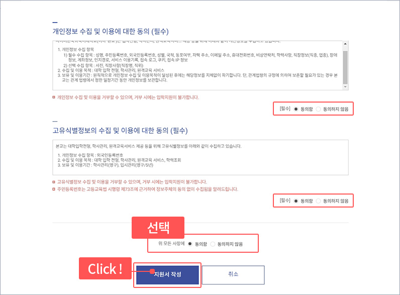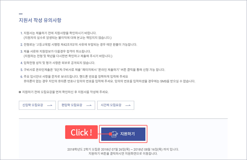 Áö¿ø¼ ÀÛ¼º À¯ÀÇ»çÇ× È®ÀÎ ÈÄ ÇÏ´Ü ¡°Áö¿øÇϱ⡱ ¹öư Ŭ¸¯