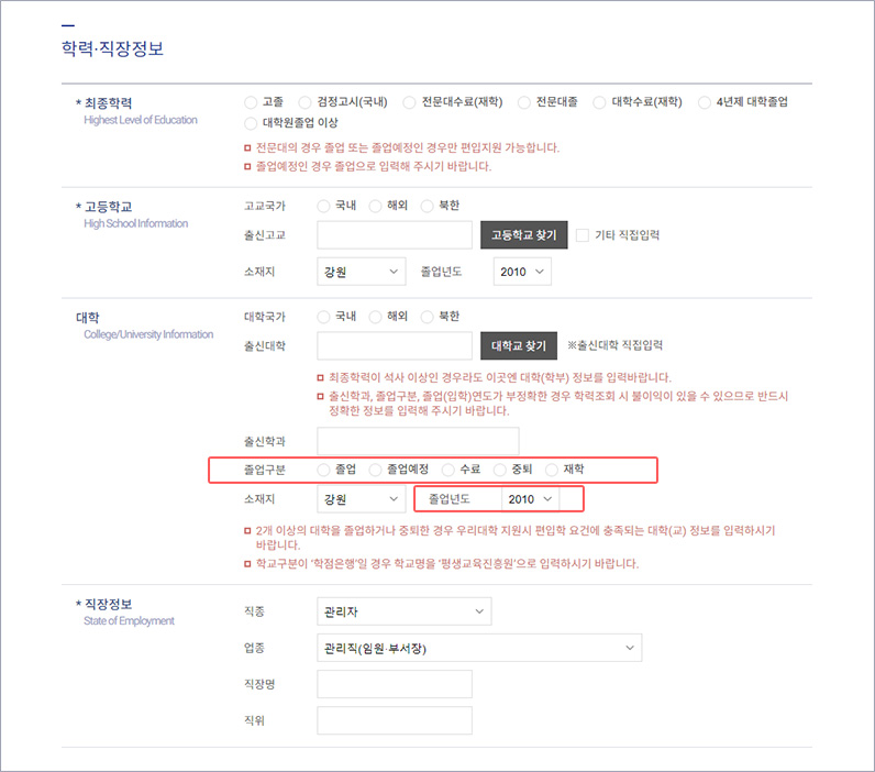 - ½ÅÀÔÇÐ : 1Çгâ ÀÔÇÐ, ÇØ¿Ü °ËÁ¤°í½Ã Ãâ½ÅÀÚ Áö¿ø ºÒ°¡